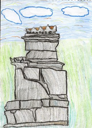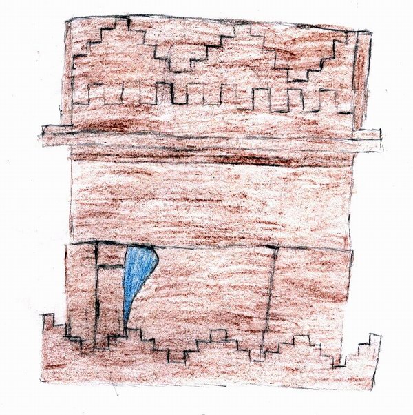 المعبد كما رسمه أحد الأطفال يظهر فيه بوضوح الصدع الكبير